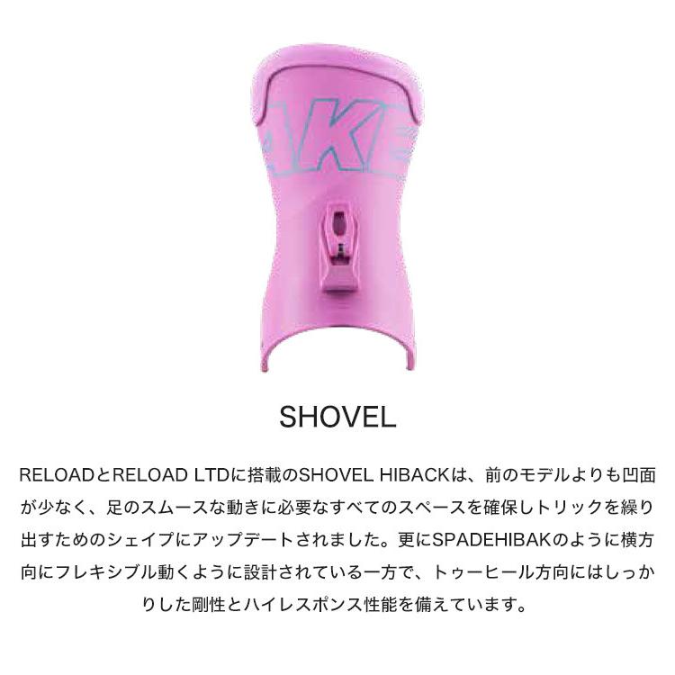 商品情報 DRAKE RELOADは、ビスやワッシャーを最大限排除した超軽量ツールレスバインディングです。 今シーズンも新しいアップデートが加えられ、気分も見た目もクールになりました。 インジェクションTPU製の新しいCHANGE-UPストラップは、ストラップを左右入れ替えることで、足首の自由度を調整することが出来ます。 スタイリッシュでサイドフレックスが柔らかいSHOVEL HIBACKは、快適さとトゥウィーカビリティを向上させました。 ソフトフレックスで反応がいいバインディングをお探しなら迷わずRELOADです。 |